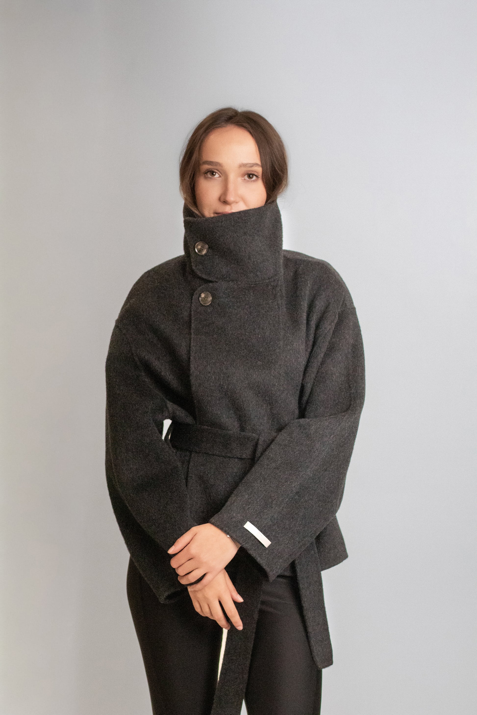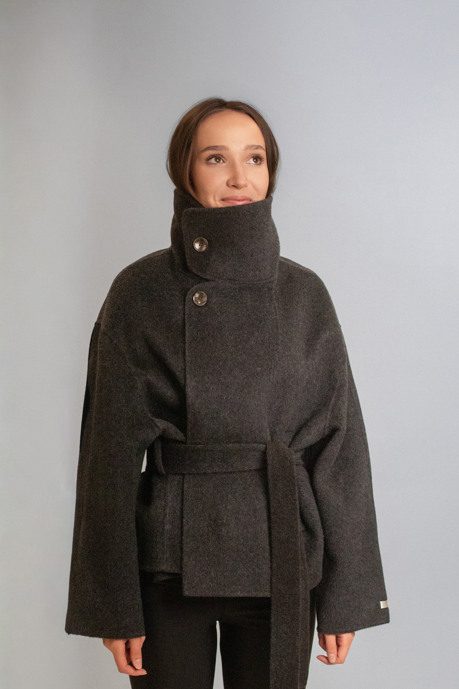 Crafted from 100% premium wool, this short coat offers exceptional warmth and a refined silhouette. The high collar design provides extra protection against the cold while adding a modern, sophisticated touch.