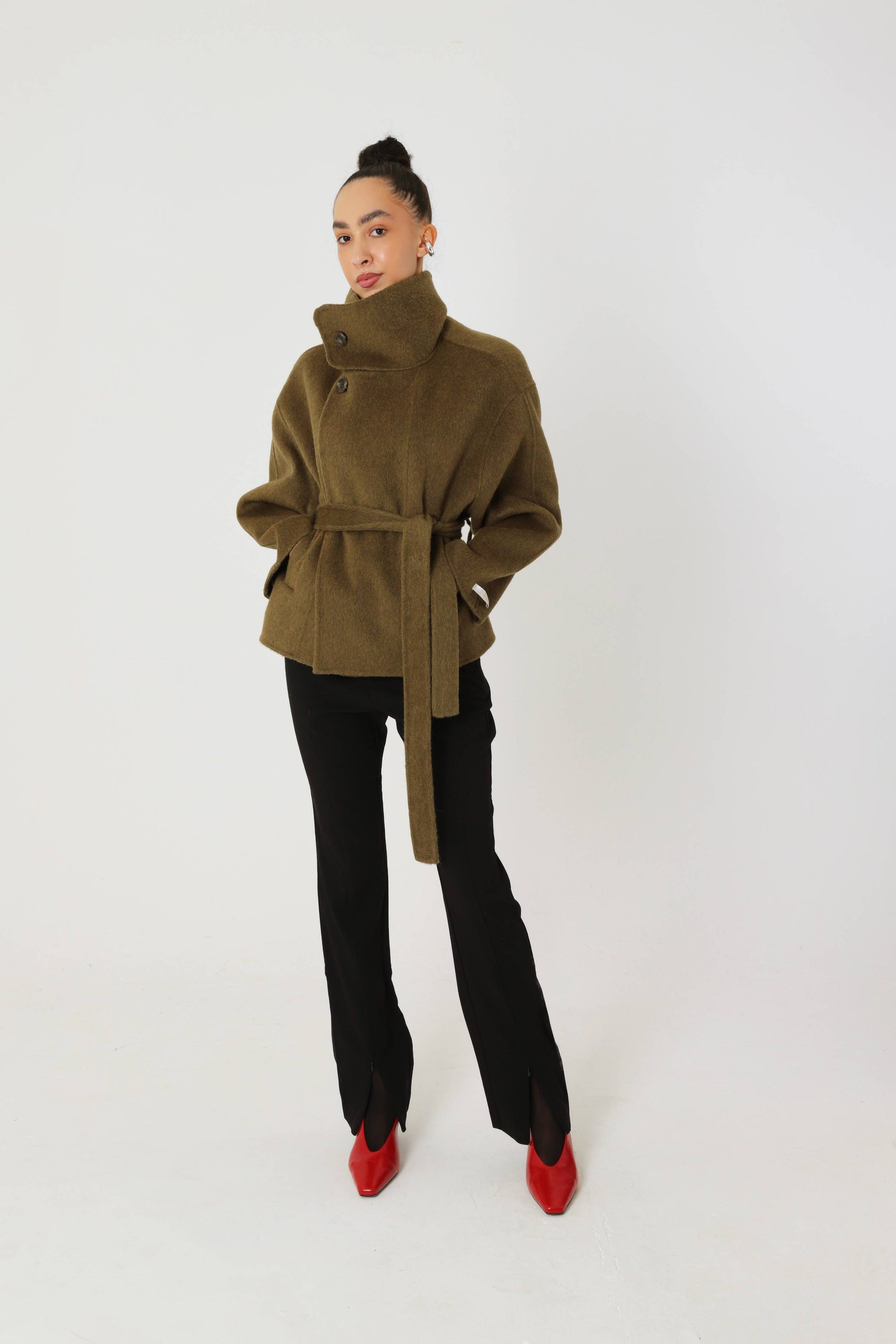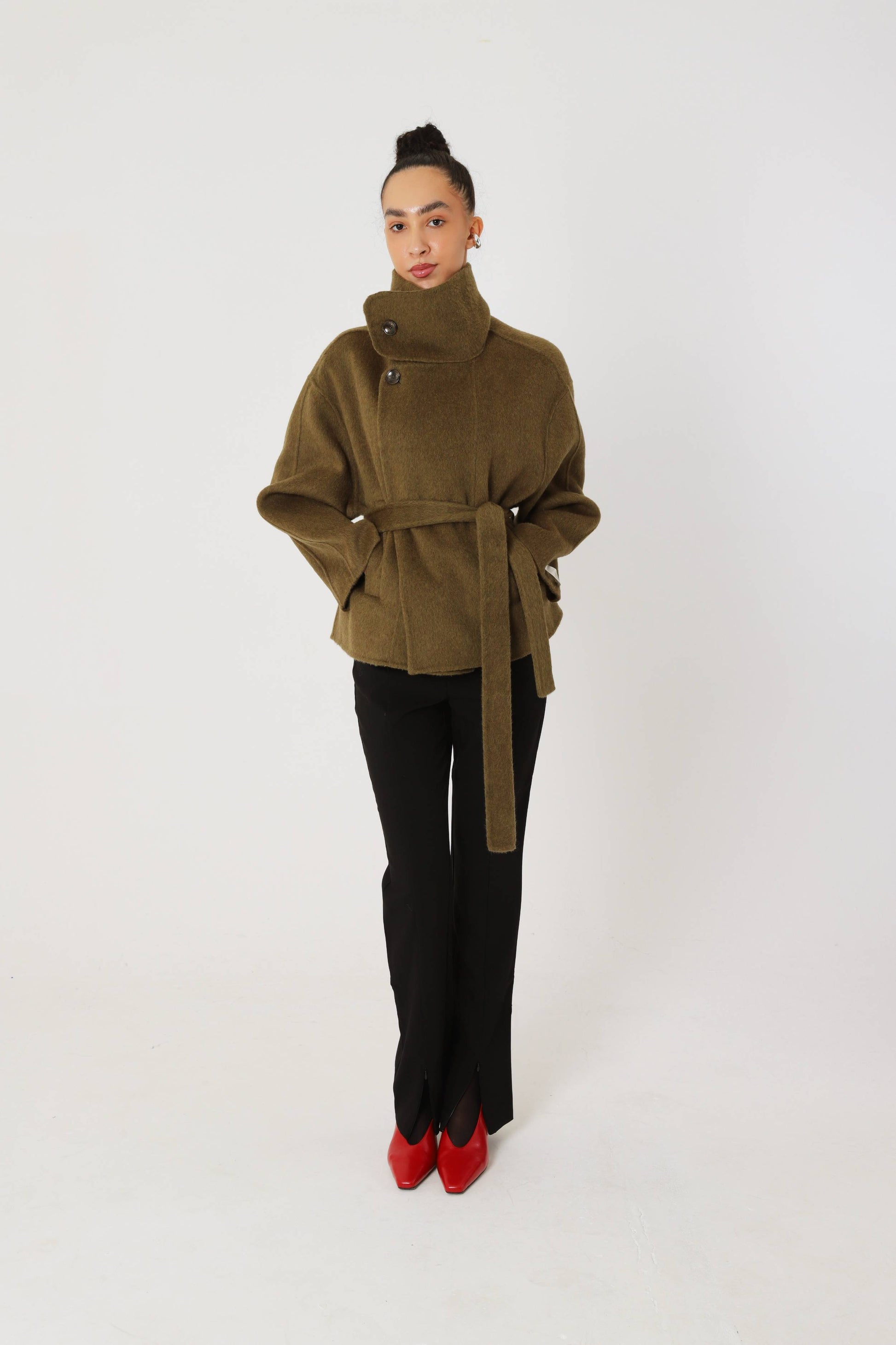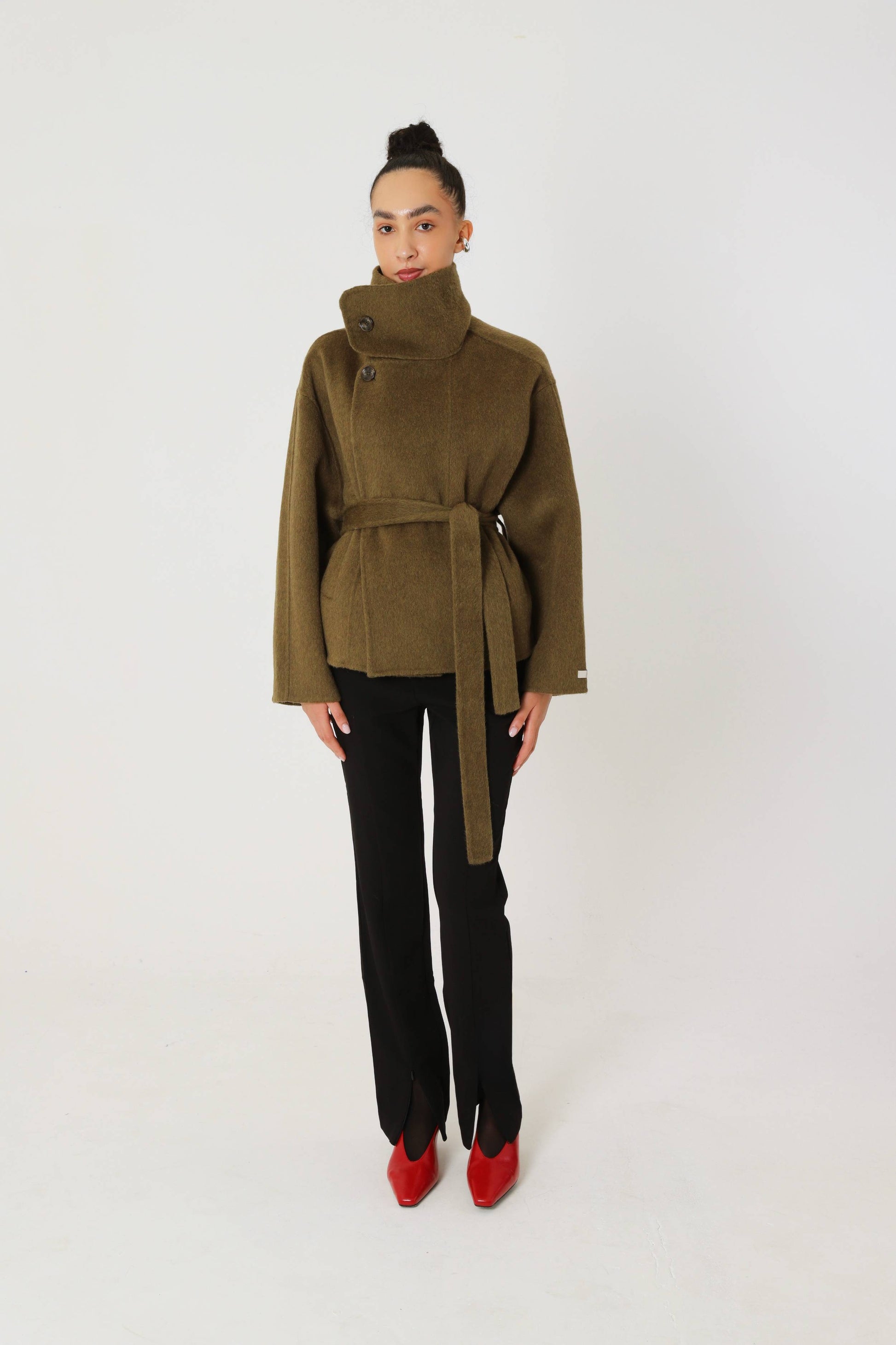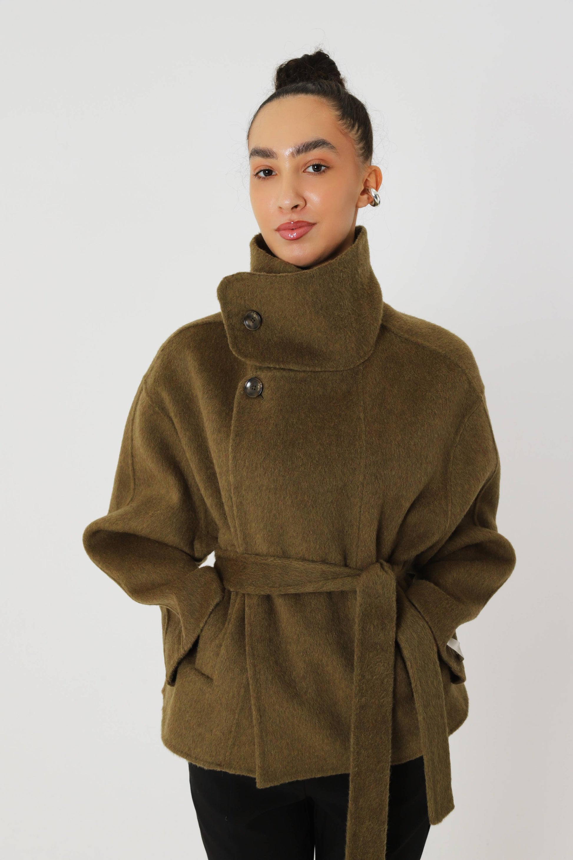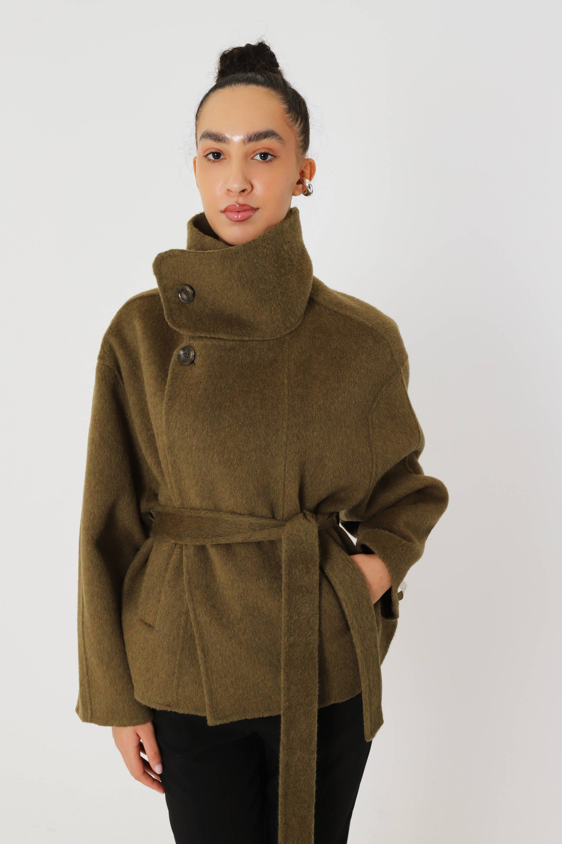 The Matcha Wool Short Coat is a refined outerwear essential designed for modern city life. Balancing structured warmth with effortless movement, it delivers a polished silhouette that feels both practical and quietly confident.