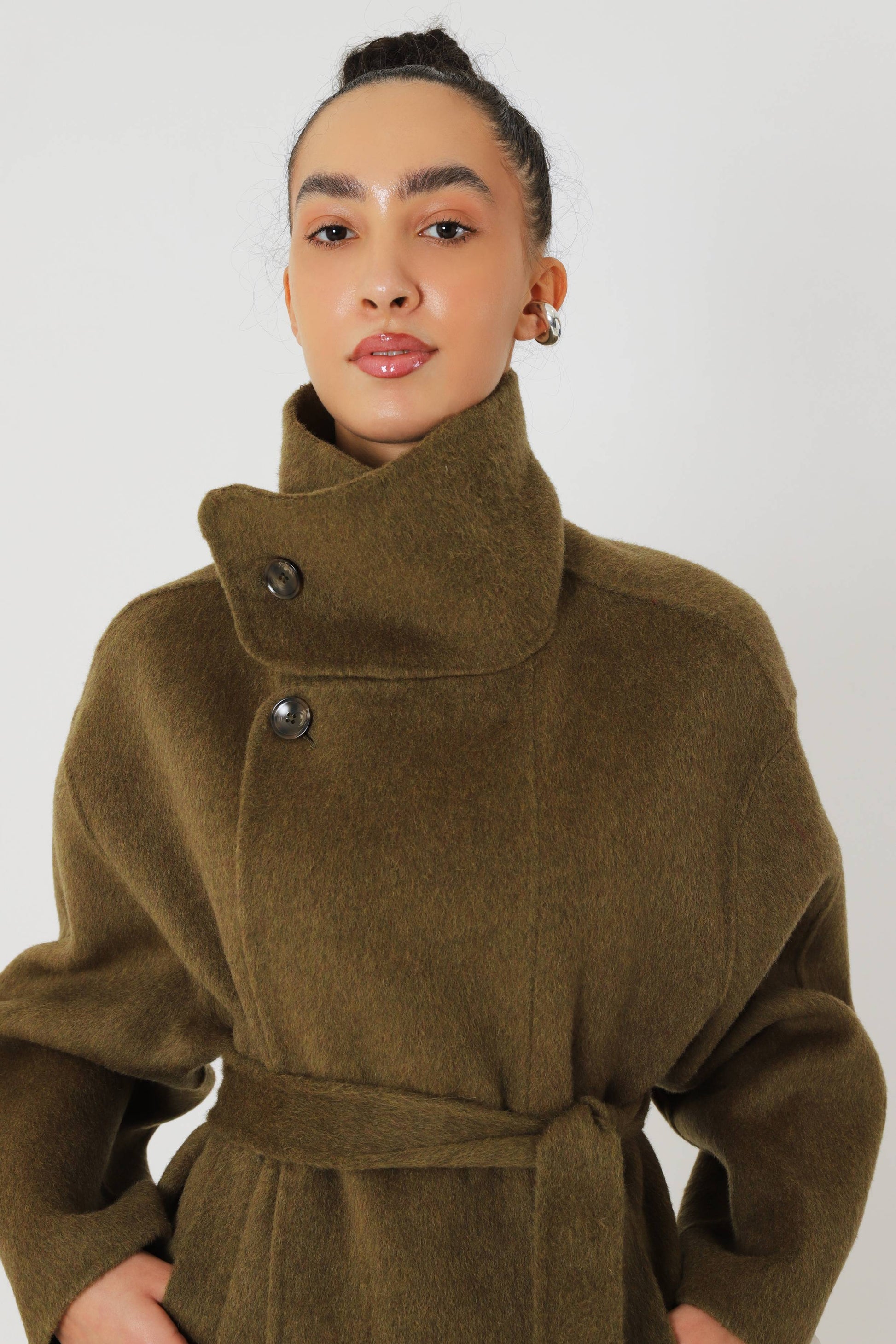 Crafted from a premium wool blend with natural insulation and a soft handle, this coat offers dependable warmth without unnecessary weight. The matcha hue adds a subtle touch of sophistication, while the minimalist cut ensures versatility across seasons and styles.